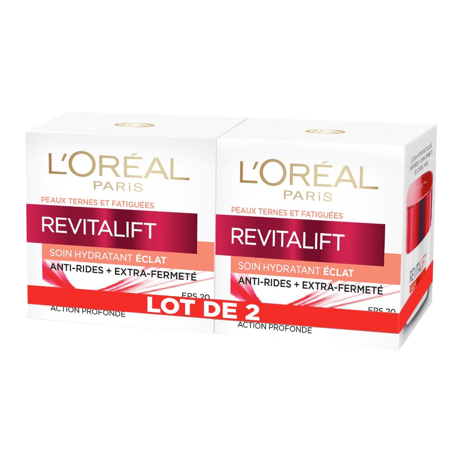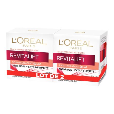 Crème de Jour SPF Anti-Rides + Extra-fermeté. Enrichie au Pro-Rétinol A, au LHA, en LHA et en Filtres UVA / UVB. Immédiatement : peau hydratée, plus lisse et éclatante Dès 4 heures : peau plus ferme (+15%) Après 2 semaines : peau paraît plus reposée (rides réduites : -10% et teint plus homogène pour 80% des femmes) L'Oréal Paris Revitalift 100.0MLT