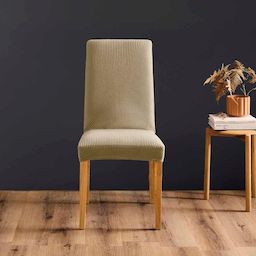 Housse de chaise extensible en polyester gaufré coloris beige