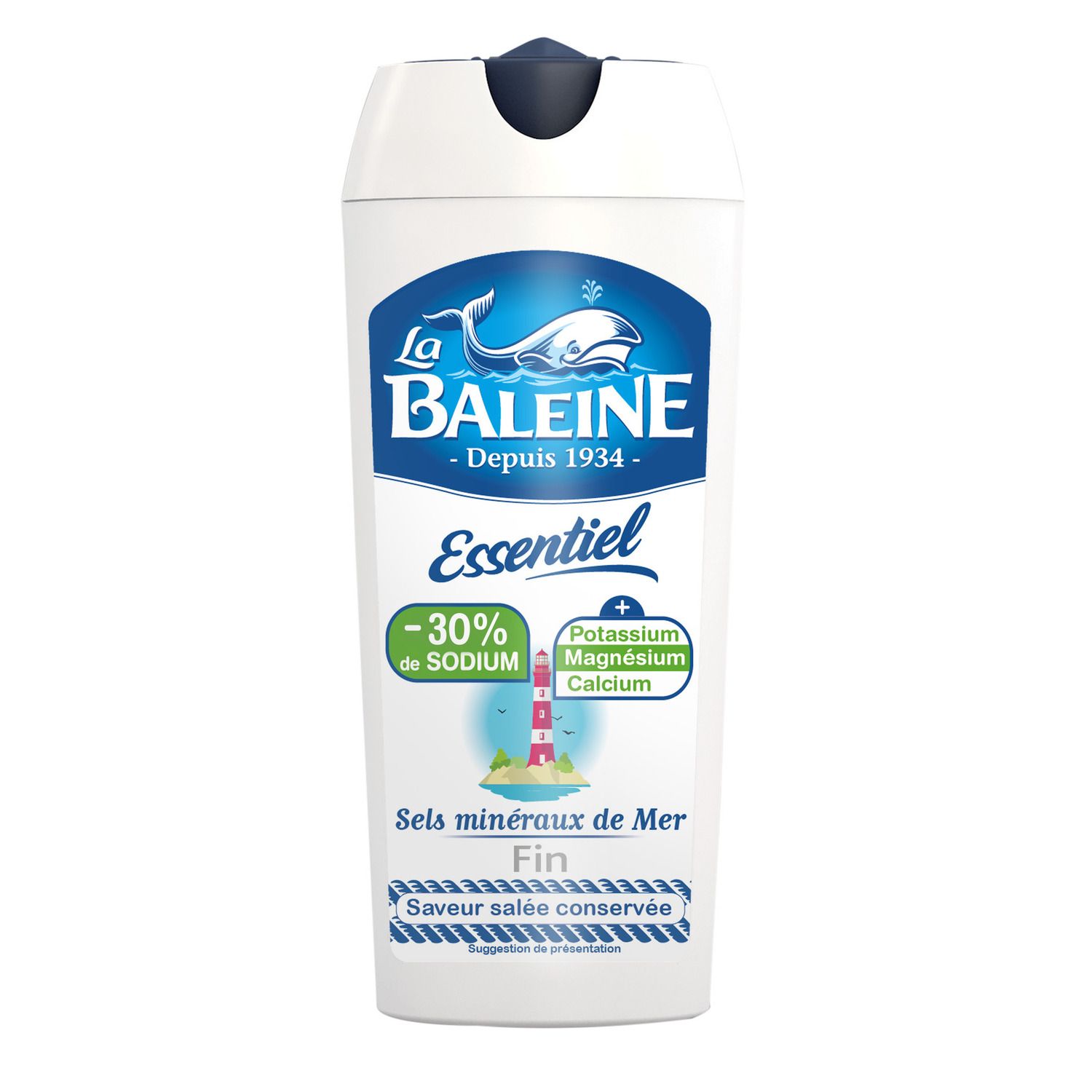 Sels minéraux de mer La Baleine « Essentiel » est un sel de mer enrichi en potassium, magnésium et calcium. Chaque minéral de mer est concentré naturellement, grâce au savoir-faire unique des saliculteurs.