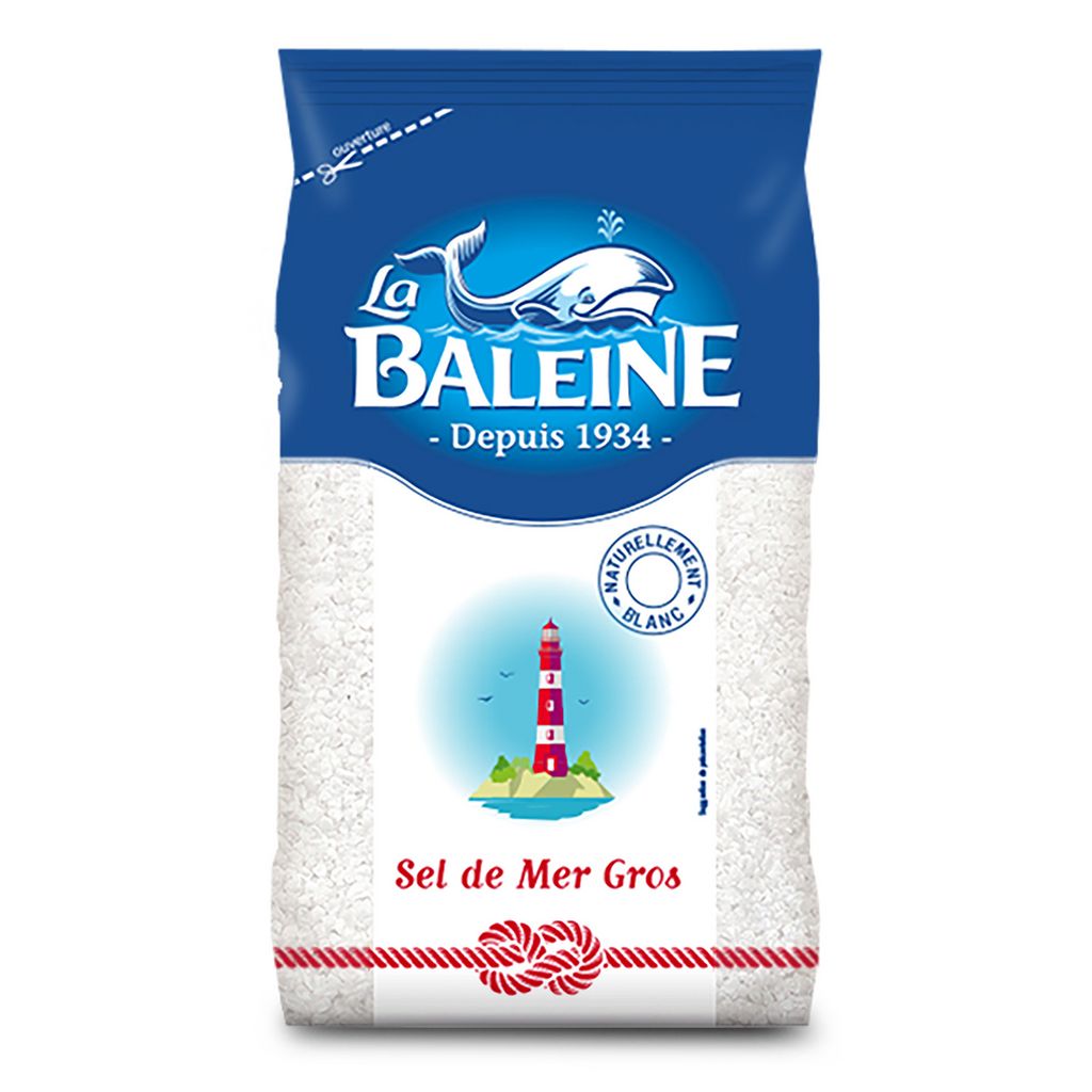 Sachet poly contenant 800 grammes de gros sel LA BALEINE