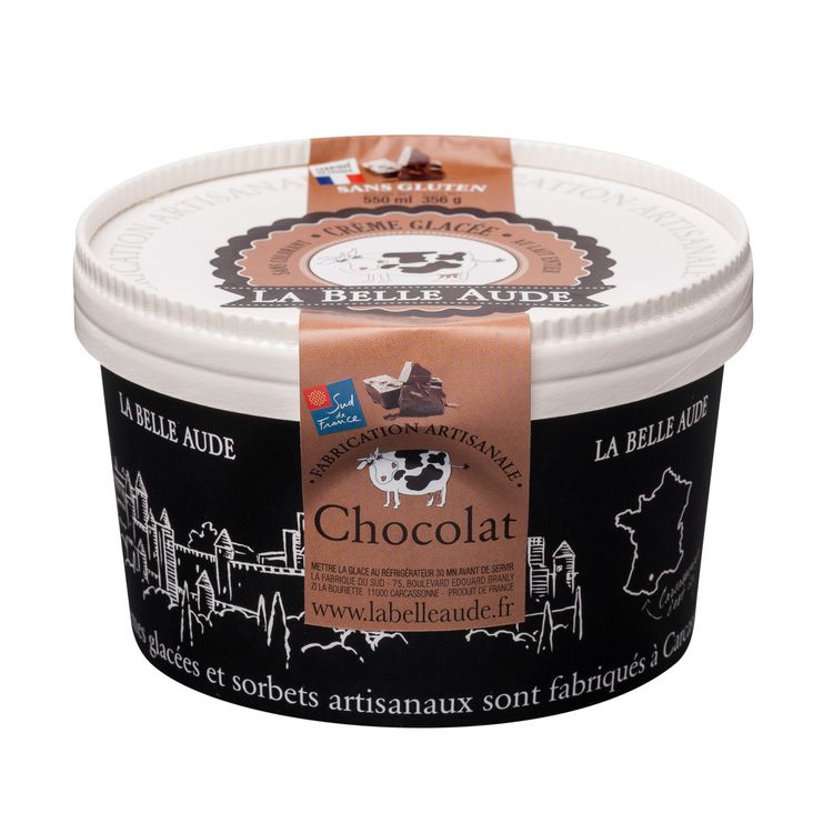 Glace artisanale haut de gamme avec du lait entier et du chocolat.