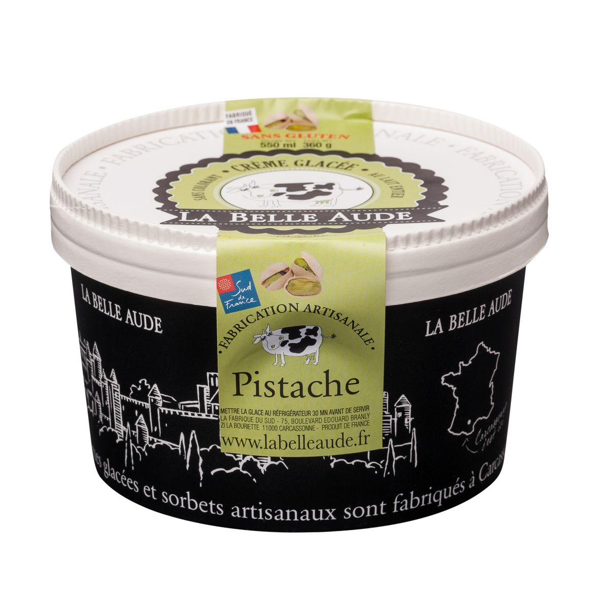 Glace artisanale haut de gamme avec du lait entier et crème fraîche à la pistache