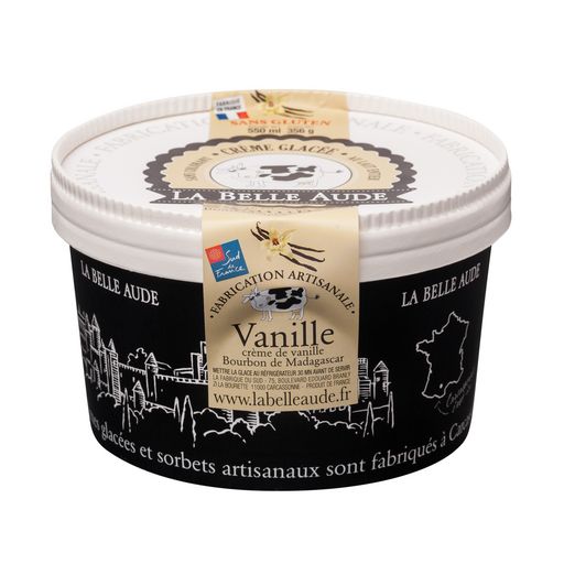 Crème glacée artisanale haut de gamme avec du lait entier et crème fraîche aux gousses de Vanille Bourbon de Madagascar.