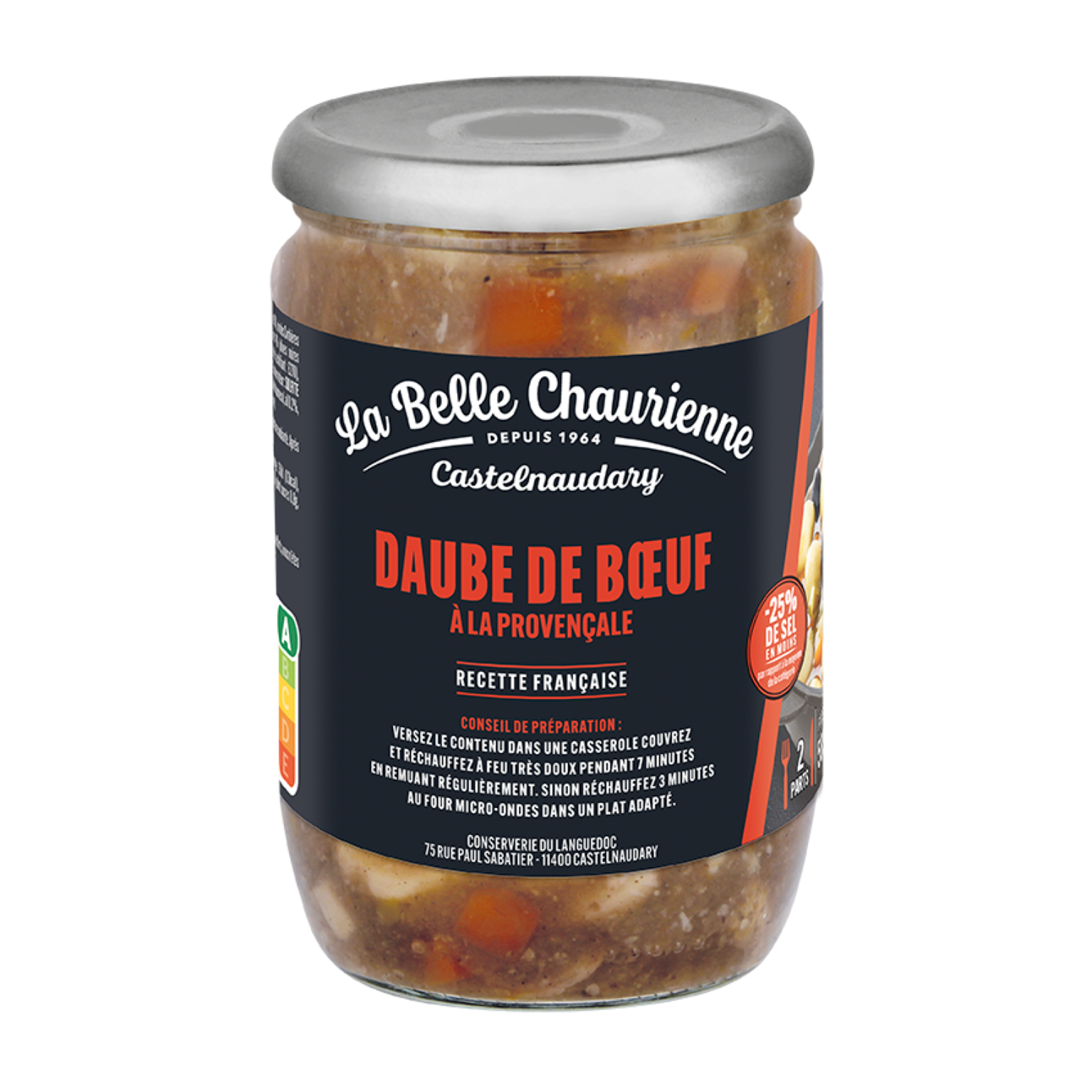 une recette pour séduire les réfractaires aux plats cuisinés appertisés : les premiers plats réduits en sel (-25% vs les autres plats de la catégorie) et un Nutriscore A, un format 2 parts en bocal