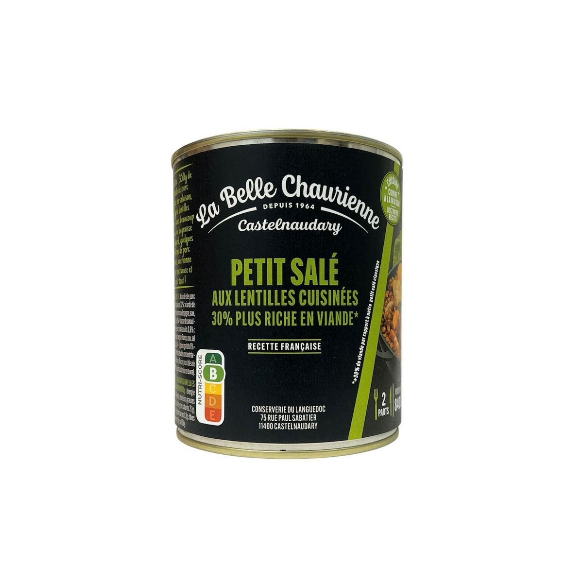 Petit salé aux lentilles cuisinées riche en viande en conserve