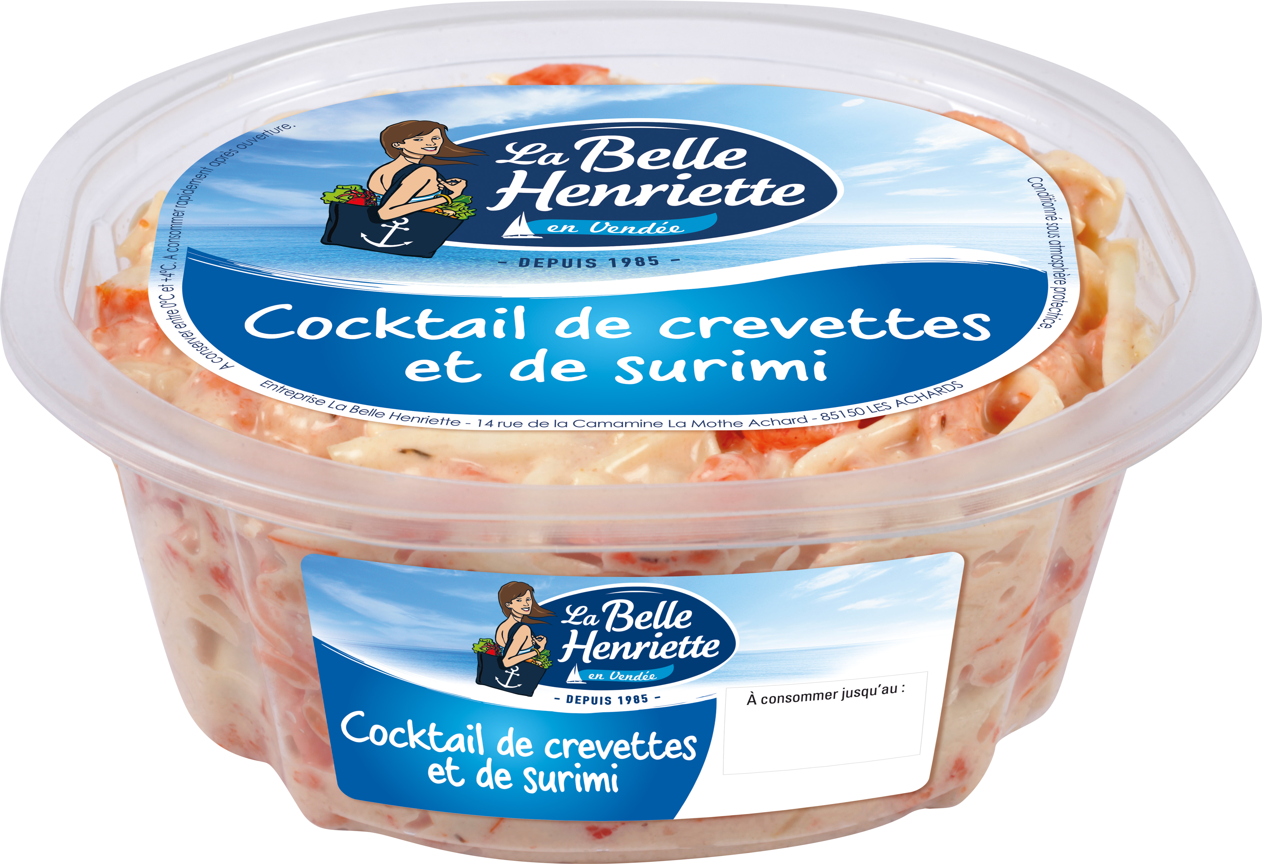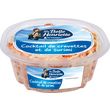 Ingrédients : CREVETTES 22%, surimi 20% (eau, chair de POISSON, amidon (BLE), blanc d'ŒUF, huile de colza, sucre, sel, arôme naturel (CRUSTACE), colorant : extrait de paprika), CELERI 19%, carottes cuites, huile de colza, eau, tomato ketchup (tomates, sucre, vinaigre d'alcool, amidon transformé, sel, arôme naturel), jus de citron à base de concentré, poivre, vinaigre d'alcool, moutarde (eau, graines de MOUTARDE, vinaigre d'alcool, sel), jaune d'ŒUF en poudre, sel, sirop de glucose, amidon transformé, épaississant : gomme xanthane, colorants : extrait de paprika, E162, conservateur : sorbate de potassium.