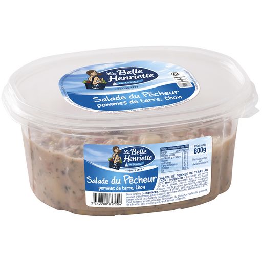 Ingrédients : Ingrédients : pommes de terre 50%, THON 14%, tomates, eau, maïs, huile de colza, olives, persil, épices, vinaigre d'alcool, jus de pomme concentré, moutarde (eau, graine de MOUTARDE, vinaigre d'alcool, sel), algue (dulse), sel, amidon transformé, épaississant : gomme xanthane, stabilisant : E579, conservateur : sorbate de potassium.