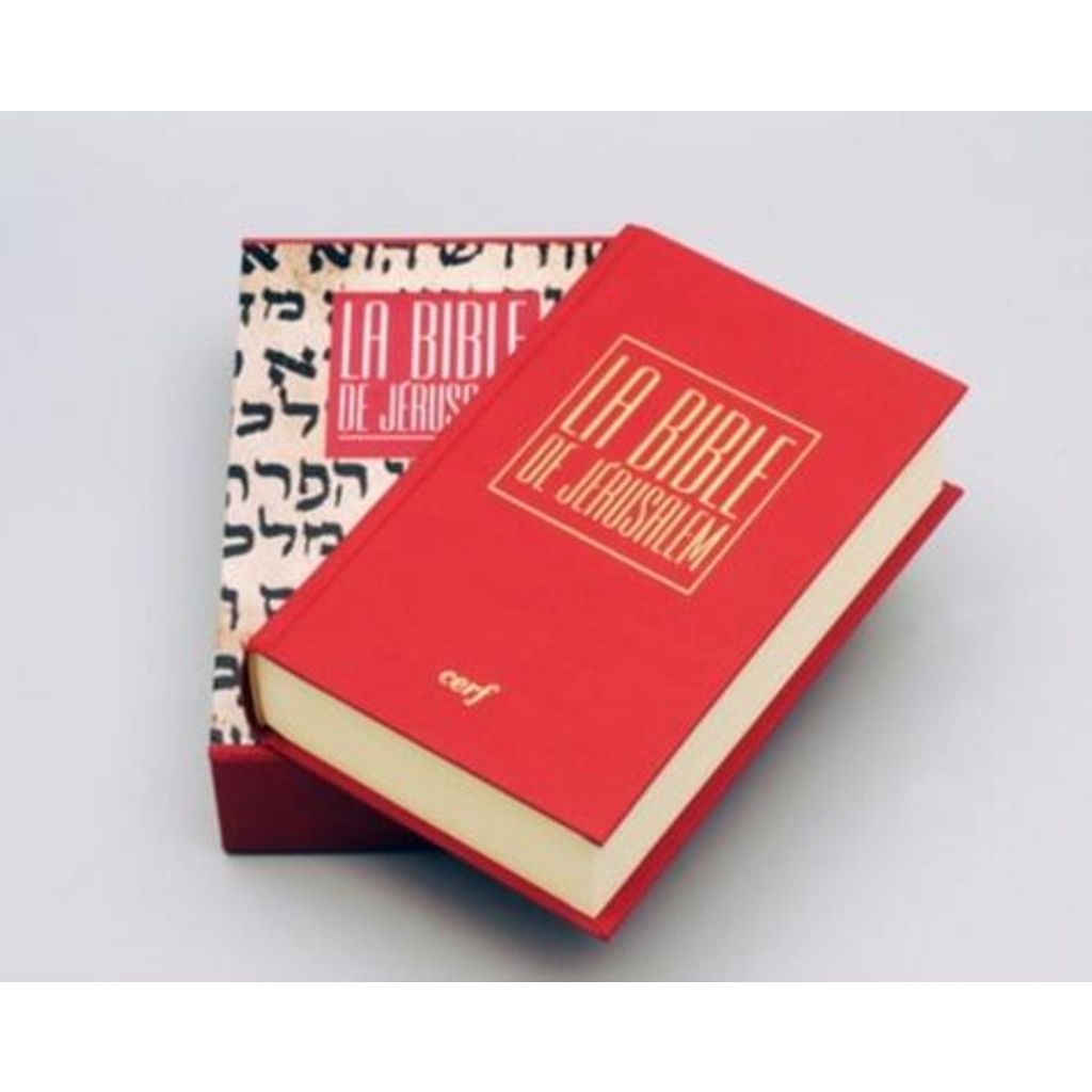 La Bible de Jérusalem est le fruit de la traduction collective des textes hébreux et grecs par l'Ecole biblique et archéologique française de Jérusalem qui lui a donné son nom. La première version est parue en 1956. La version actuellement imprimée date de 2000. La qualité des introductions, des traductions et des notes reflète le meilleur de la recherche exégétique contemporaine. La mise en pages réjouit l'oeil tout en facilitant l'intelligence du texte - l'usage de strophes signalant par exemple les passages poétiques. Cette disposition est devenue un modèle pour toutes les bibles modernes ultérieures. La Bible de Jérusalem est actuellement la traduction biblique la plus répandue en France, et fait figure de altique. La fidélité aux textes originaux en fait une bible d'étude. La qualité littéraire de sa traduction, la grande attention portée à son vocabulaire et à son style en font une bible pour la lecture, adaptée à tous les publics. Les livres présentés sont ceux du canon catholique.