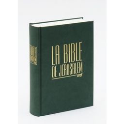 La Bible de Jérusalem est le fruit de la traduction collective des textes hébreux et grecs par l'Ecole biblique et archéologique française de Jérusalem qui lui a donné son nom. La première version est parue en 1956. La version actuellement imprimée date de 2000. La qualité des introductions, des traductions et des notes reflète le meilleur de la recherche exégétique contemporaine. La mise en pages réjouit l'oeil tout en facilitant l'intelligence du texte - l'usage de strophes signalant par exemple les passages poétiques. Cette disposition est devenue un modèle pour toutes les bibles modernes ultérieures. Des références dans les marges renvoient à d'autres passages. La Bible de Jérusalem est actuellement la traduction biblique la plus répandue en France, et fait figure de altique. La fidélité aux textes originaux en fait une bible d'étude. La qualité littéraire de sa traduction, la grande attention portée à son vocabulaire et à son style en font une bible pour la lecture, adaptée à tous les publics. Les livres présentés sont ceux du canon catholique.