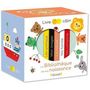 Les premiers livres de bébé ! Cette bibliothèque de 5 livres facilement manipulables par les mains du tout-petit, l'accompagnera au fil de ses premiers mois. Chaque album cartonné a sa propre spécificité de fabrication afin de répondre précisément aux besoins du bébé : un imagier en noir et blanc pour apprendre les objets du quotidien, la présentation de la famille avec un miroir à la fin, un album accordéon pour découvrir les animaux, un livre avec de l'embossing sur chaque page pour stimuler le sens du toucher et une comptine illustrée. Avec les illustrations colorées et pleines de tendresse de Sophie Boxom. Dans la même collection : - Les câlins de Papa - Les bisous de Maman - Bonjour, petit tigre - Bonne nuit, petit lapin