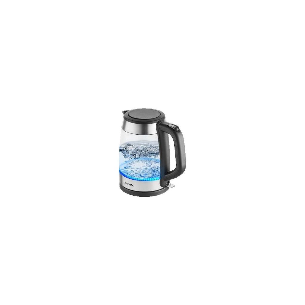 Découvrez la bouilloire électrique Concept RK4150 de la marque Concept Solution. Dotée d'une capacité de 1,7 litre et d'une puissance de 2200 W, cette bouilloire en verre borosilicaté permet de préparer jusqu'à 7 tasses d'eau chaude rapidement et en toute sécurité grâce à son arrêt automatique et sa