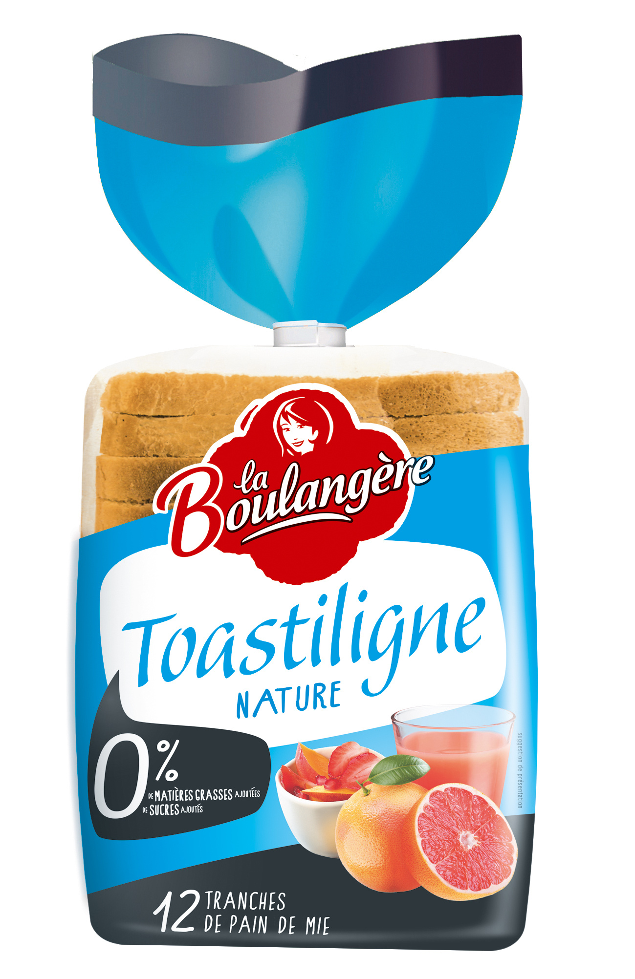 Le pain de mie Toastiligne nature La Boulangère propose une recette sans superflus grâce à sa composition sans sucres ajoutés* et avec 50% de matières grasses en moins**. Source de fibres, sa recette est élaborée avec de la farine de blé issu du commerce équitable français. Polyvalent, ce pain de mie peut se consommer en sucré au petit-déjeuner comme en sandwich salé pour le déjeuner et le dîner. Le pain de mie Toastiligne nature La Boulangère : l'allié des repas équilibrés. *Contient uniquement les sucres naturellement présents dans les ingrédients tels que la farine ** 50% de matières grasses en moins que la moyenne des pains de mie grandes tranches classiques nature de marque nationale PAIN DE MIE TRANCHÉ