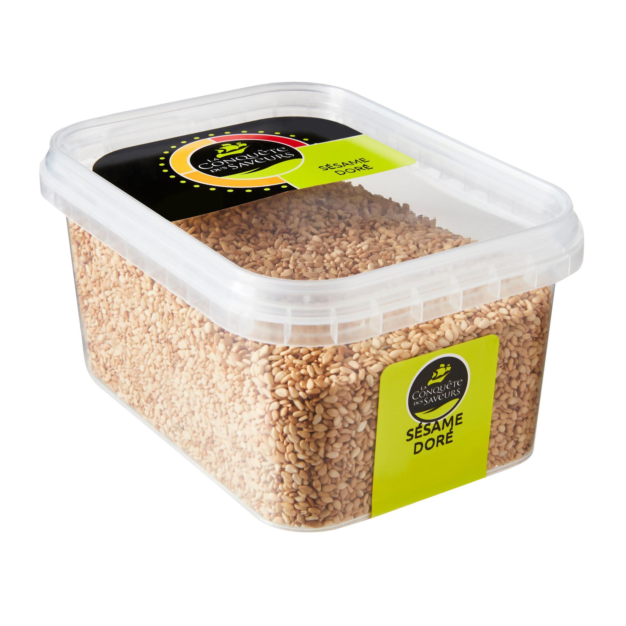 Ces graines de sésame doré dégagent un arôme unique ! Un peu plus fumé que le sésame blanc, il donne également un goût délicat de noisette aux sauces, pains, riz, légumes, salades, poissons et omelettes.
