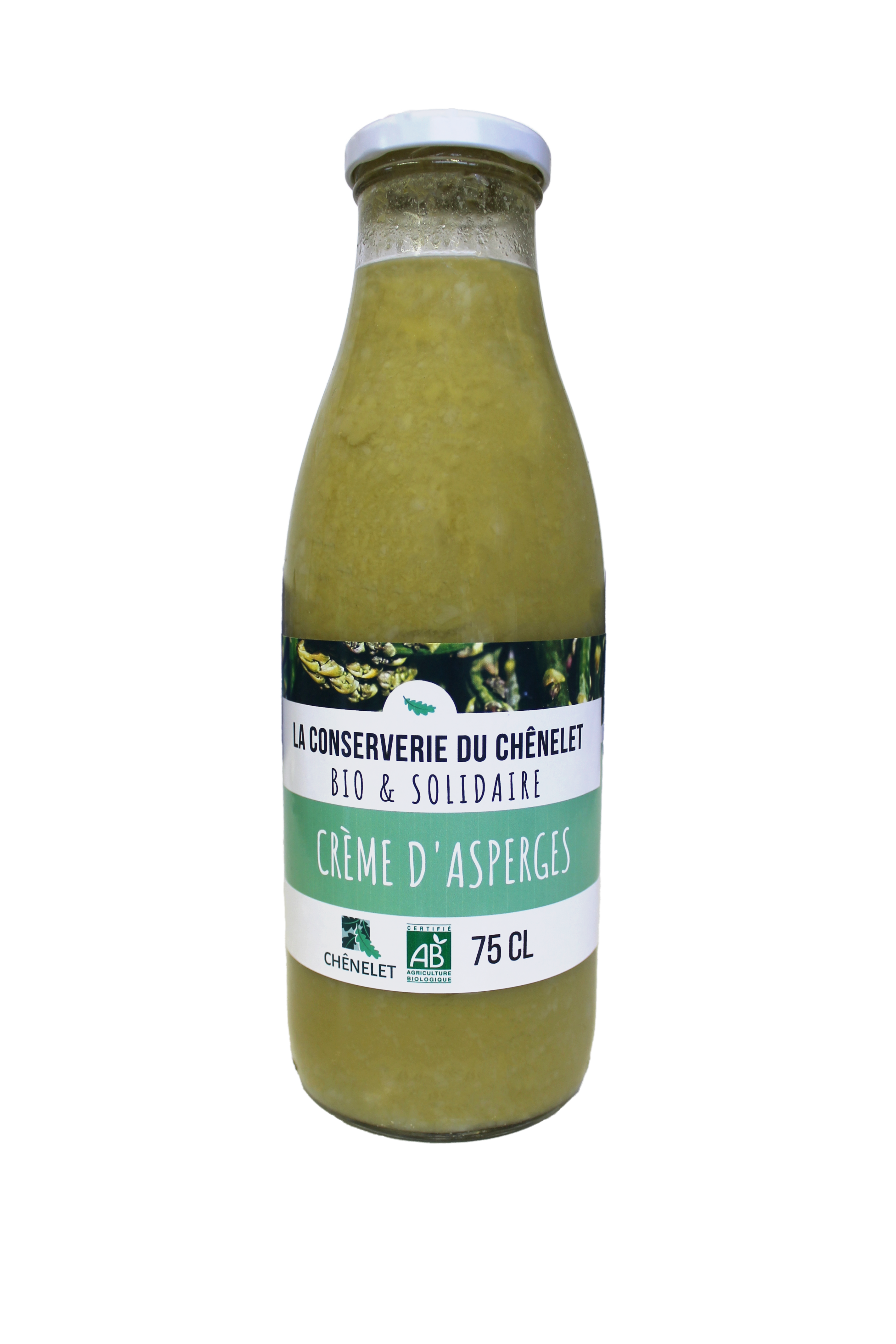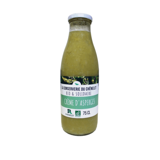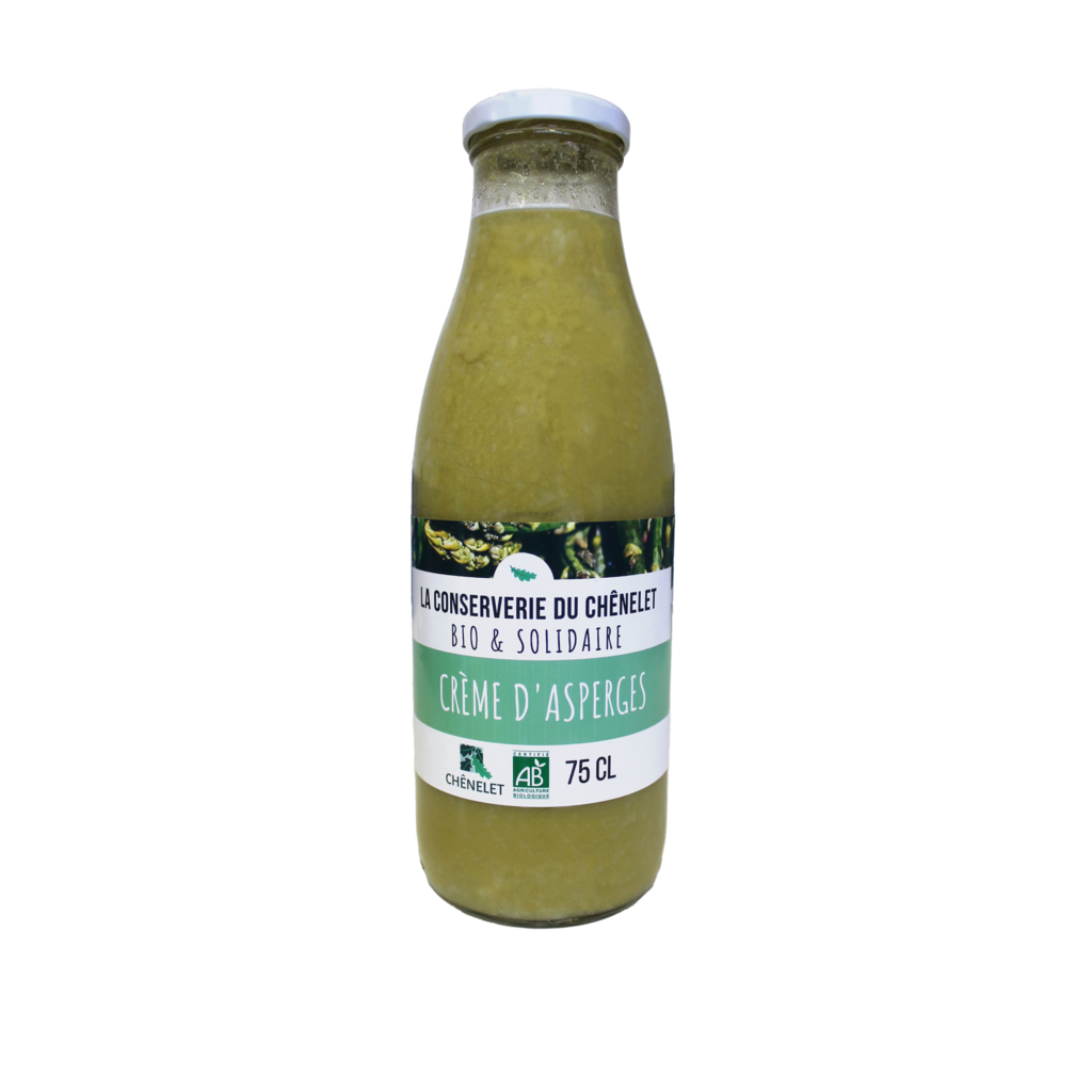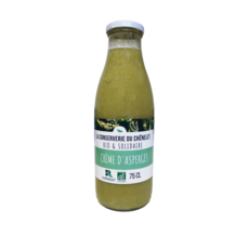 Légumes*(64,06%) dont [Asperges (32%), pommes de terre* (27,16%), oignons* (4,9%)], crème liquide* (1,23%), Sel (0,61%) et Eau.