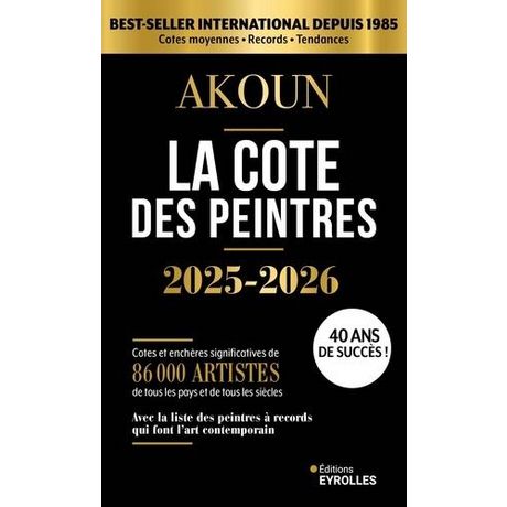 La bible pour celles et ceux intéressés par le marché de l'art Cet ouvrage, créé et rédigé par Jacques Armand Akoun, est le plus important répertoire des cotes de peintres en format de poche : plus de 86 000 peintres de toutes époques et de tous pays. Un simple coup d'oeil permet de connaître la cote moyenne de chaque artiste. Les enchères records sont signalées lorsqu'elles sont très éloignées du prix moyen. Ce livre est l'outil indispensable des chineurs, collectionneurs d'art, marchands et artistes. Il n'a pas d'équivalent sur le marché. Inclus : la liste des peintres à records qui font l'art contemporain, le palmarès des records, les conseils d'utilisation du livre (en anglais et en français)...