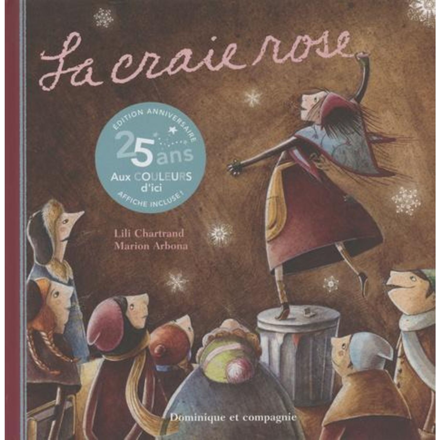 Depuis plus de 25 ans, Dominique et compagnie publie fièrement des livres Aux COULEURS d'ici. Cette édition anniversaire est dédiée aux créateurs et créatrices de chez nous : merci de nous faire rêver avec les petits lecteurs et lectrices du monde entier. Une magnifique histoire qui donne envie de c
