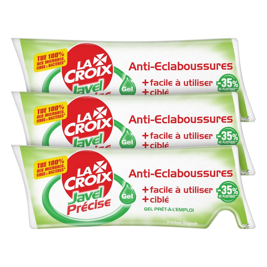 La Croix Javel Précise, fini les éclaboussures ! Le nouveau Gel La Croix Javel Précise tue 100% des microbes, virus et bactéries. Grâce à sa texture gel anti-splash, il permet d'éviter les éclaboussures et est encore plus facile à utiliser et plus ciblé. Gel prêt-à-l'emploi.
