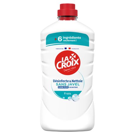 Le nouveau nettoyant fraîcheur 6 ingrédients La Croix desinfecte et nettoie en eliminant 99,99% des bactéries. Efficace sans javel et avec seulement 6 ingrédients, sa formule enlève la saleté et la graisse, améliore la performance du nettoyage, désinfecte et ajoute une touche parfumée.