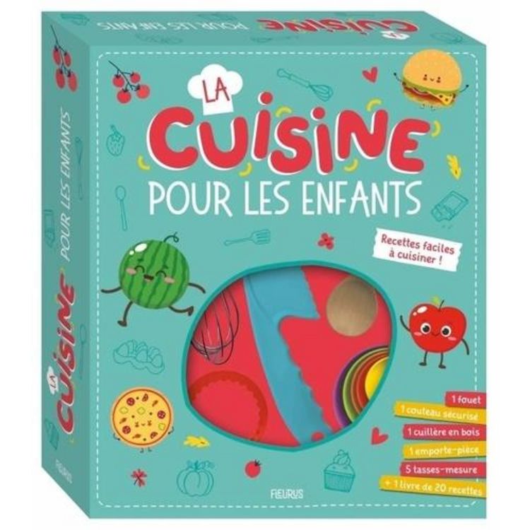 LA CUISINE POUR LES ENFANTS. COFFRET AVEC 1 LIVRE DE 20 RECETTES + 9 ACCESSOIRES DE CUISINE ADAPTES AUX ENFANTS, Fleurus