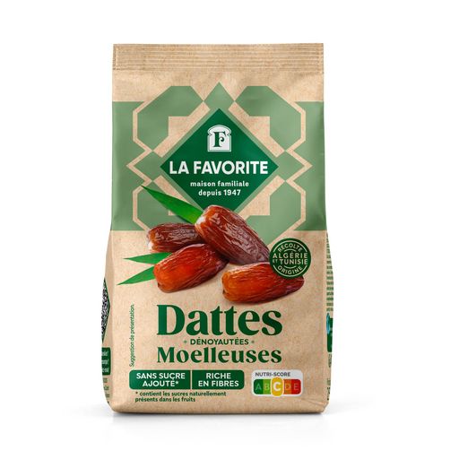 Dattes Deglet Nour dénoyautées réhydratées à 26% d’humidité maximum.