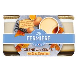 LAIT entier, crème (14%), ŒUFs (14%), caramel (10%) : sucre caramélisé - eau- amidons, sucre, infusion de gousses de vaniLLE (LAIT)