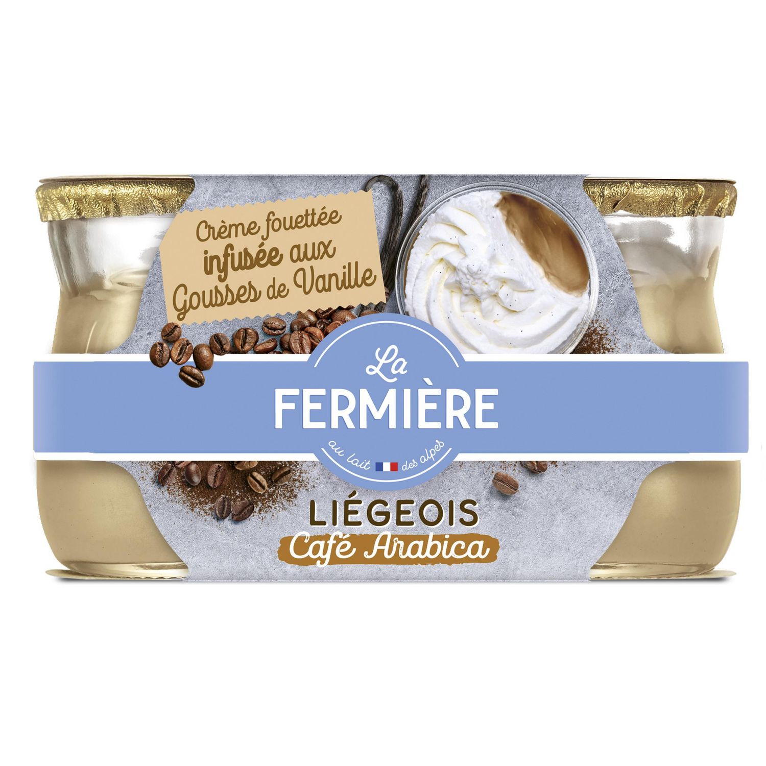 Crème dessert au café, nappée de crème façon glacier, infusée à la vanille de Madagascar.
