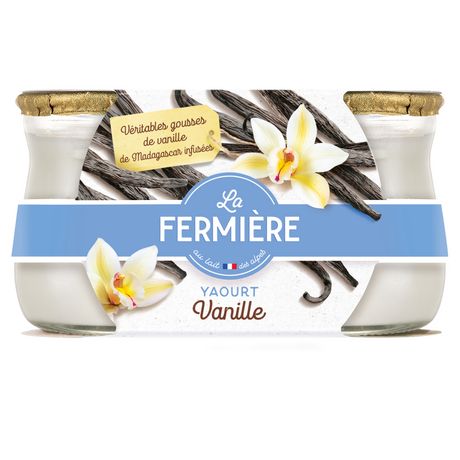 LAIT entier, CRÈME, sucre 7.5%, FERMENTS LACTIQUES, infusion de gousses de vanille de Madagascar. LAIT et CRÈME : origine France