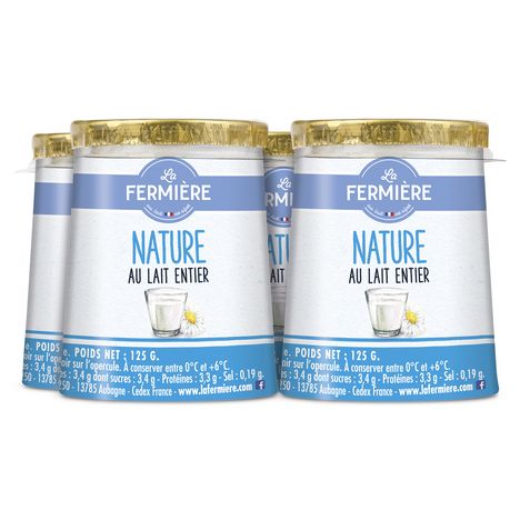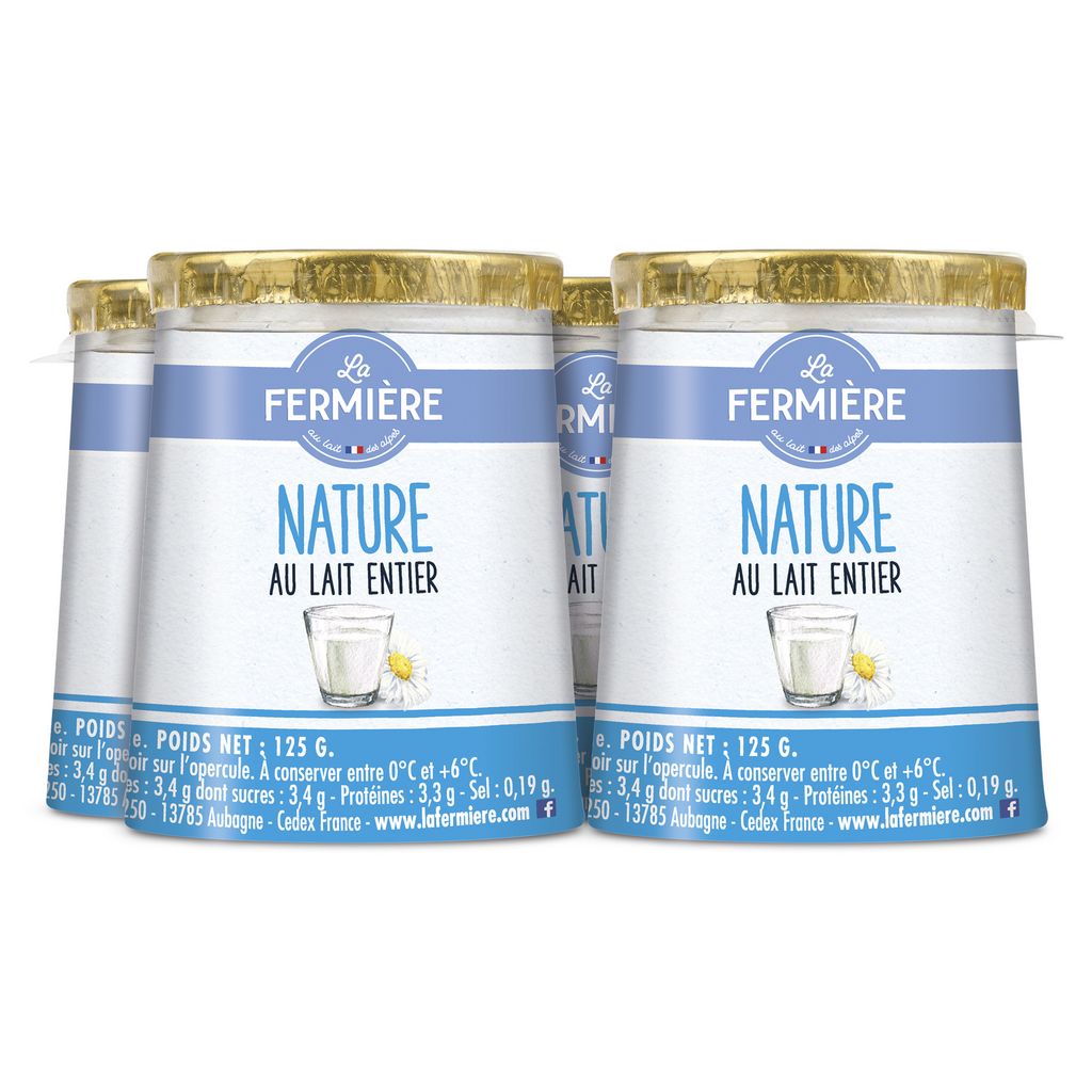 Yaourt ferme au lait entier nature présenté dans un pot en carton
