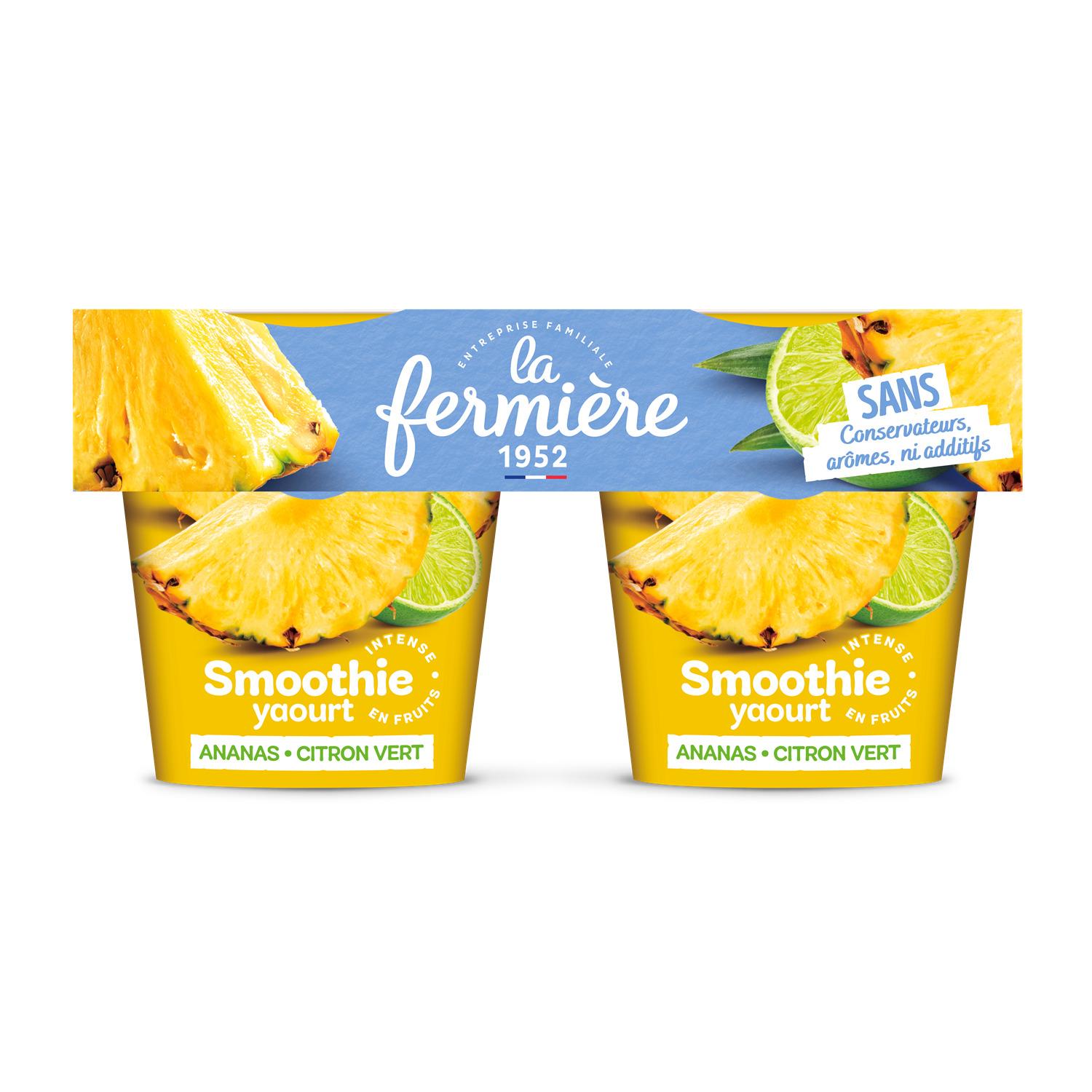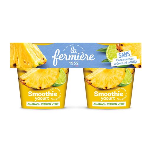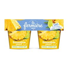 Yaourt brassé au citron vert et à l'anannas présenté dans un pot en carton recyclable.