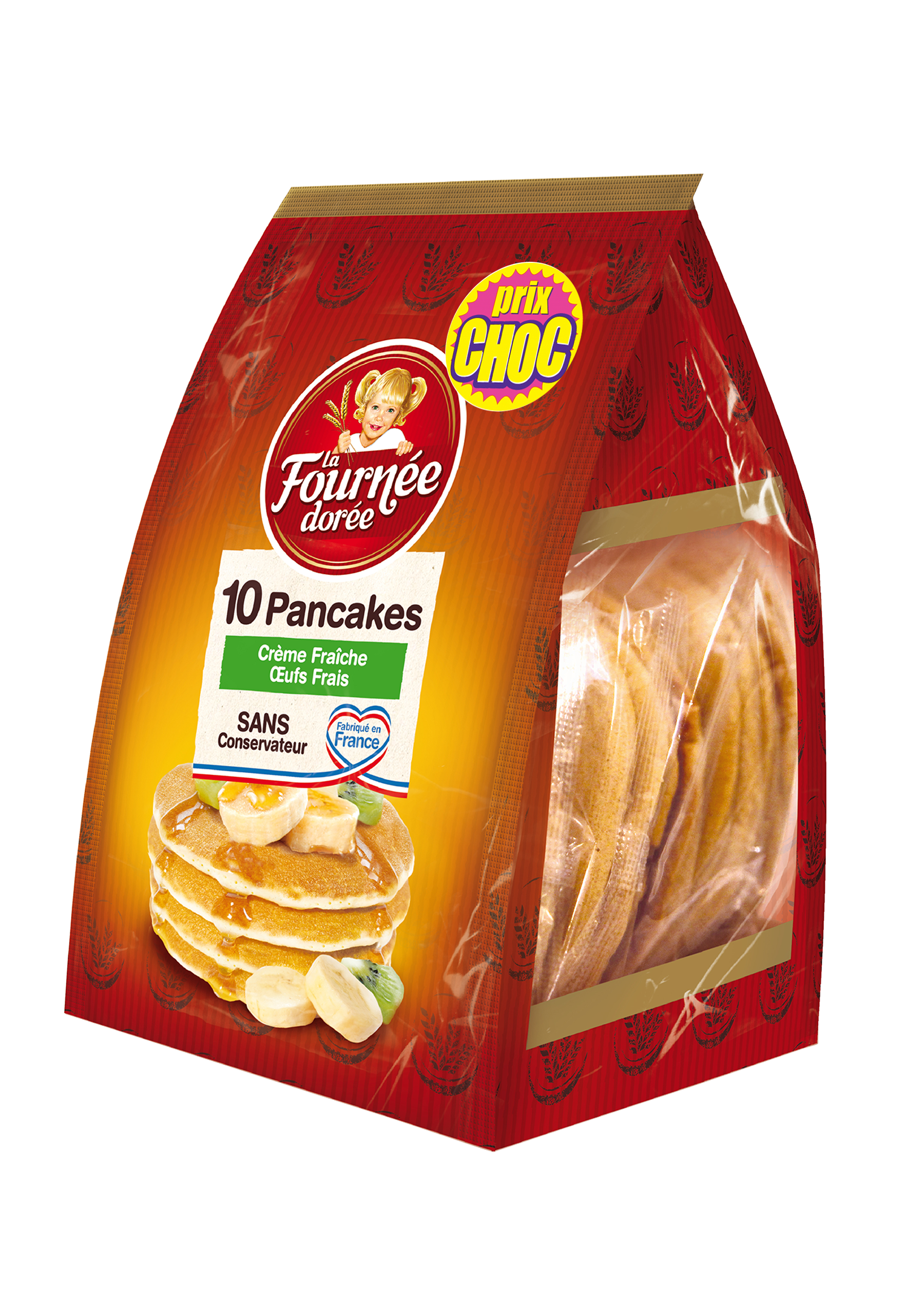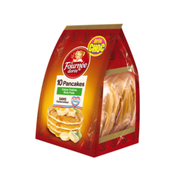 Farine de blé française 26%, eau, œufs entiers frais 13.5%, sucre, crème fraîche 7%, dextrose en poudre, huile de colza, stabilisant (glycérol), poudre de lait entier 4%, amidon transformé de maïs, émulsifiant (E471), poudre à lever (carbonate de calcium, bicarbonate de sodium, diphosphate tetrasodique), sel, arôme naturel. Traces éventuelles de fruits à coque.