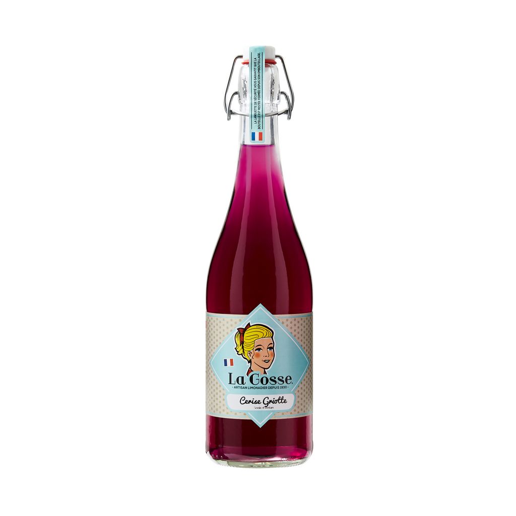 Ingrédients : Eau gazéifiée, sucre, acidifiant : acide citrique, arôme naturel de cerise griotte, colorants.