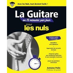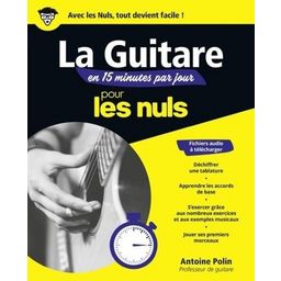 Le premier coaching pour apprendre la Guitare vite et bien ! Avec un fichier audio en téléchargement pour progresser plus vite INITIATION A LA GUITARE : Un programme sur mesure vous attend sur les 6 prochains mois dans ce livre de musique pour les Nuls : - Chaque jour : deux accords à découvrir avec une photo pour bien positionner sa main et le diagramme associé. - Chaque semaine : un petit bilan de ce qui a été vu durant la semaine, avec des renvois au fichier audio pour reproduire à l'identique les exercices proposés. - Toutes les 4 semaines : un morceau un peu plus long pour s'amuser avec votre guitare LA GUITARE POUR TOUS : Ce livre pour les Nuls est conseillé à tous ceux qui souhaitent apprendre la guitare facilement et rapidement. Que vous soyez un néophyte ou un apprenti guitariste, cet ouvrage vous donne toutes les clés grâce à sa méthode de coaching quotidien. Découvrez les tablatures, les accords de base, les accessoires de guitare et bien d'autres dans ce livre de musique. N'hésitez plus et progressez rapidement grâce à cet ouvrage et sa méthode unique, renforcée par un fichier audio à télécharger. UN PROGRAMME SUR-MESURE : Ce livre de musique pour les Nuls vous propose une méthode de coaching en 15 minutes quotidiennes, pour apprendre la guitare en 6 mois et progresser rapidement. A travers des exercices et des exemples musicaux, vous aurez toutes les cartes en main pour devenir un véritable apprenti guitariste. Des accessoires de guitare aux tablatures, tous les conseils et toutes les techniques seront développées dans ce livre de musique. Grâce à la présence d'un fichier audio, vous pourrez mettre en pratique tous les exercices proposés dans ce coaching. Vous pourrez ainsi jouer vos premiers morceaux rapidement et surprendre vos proches !