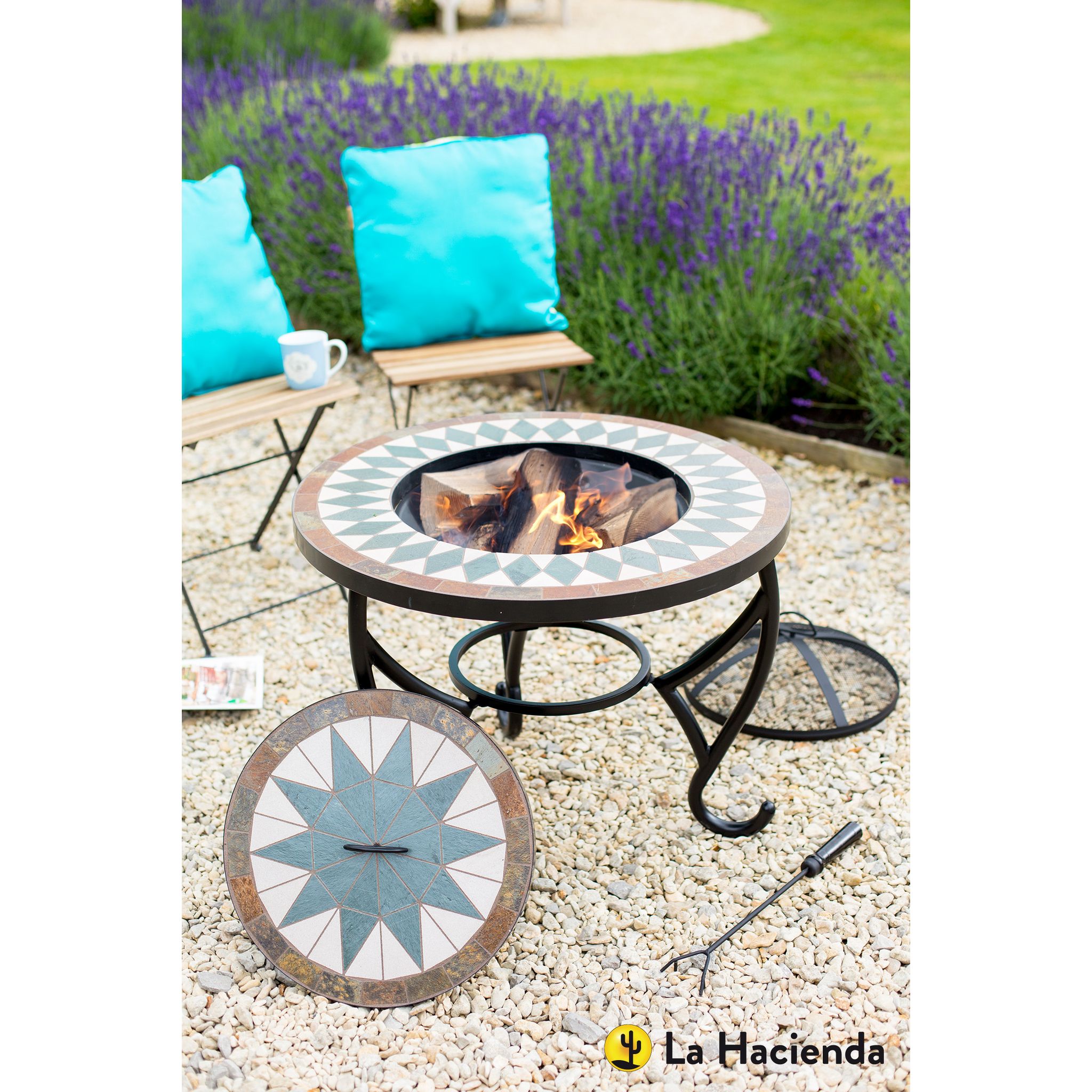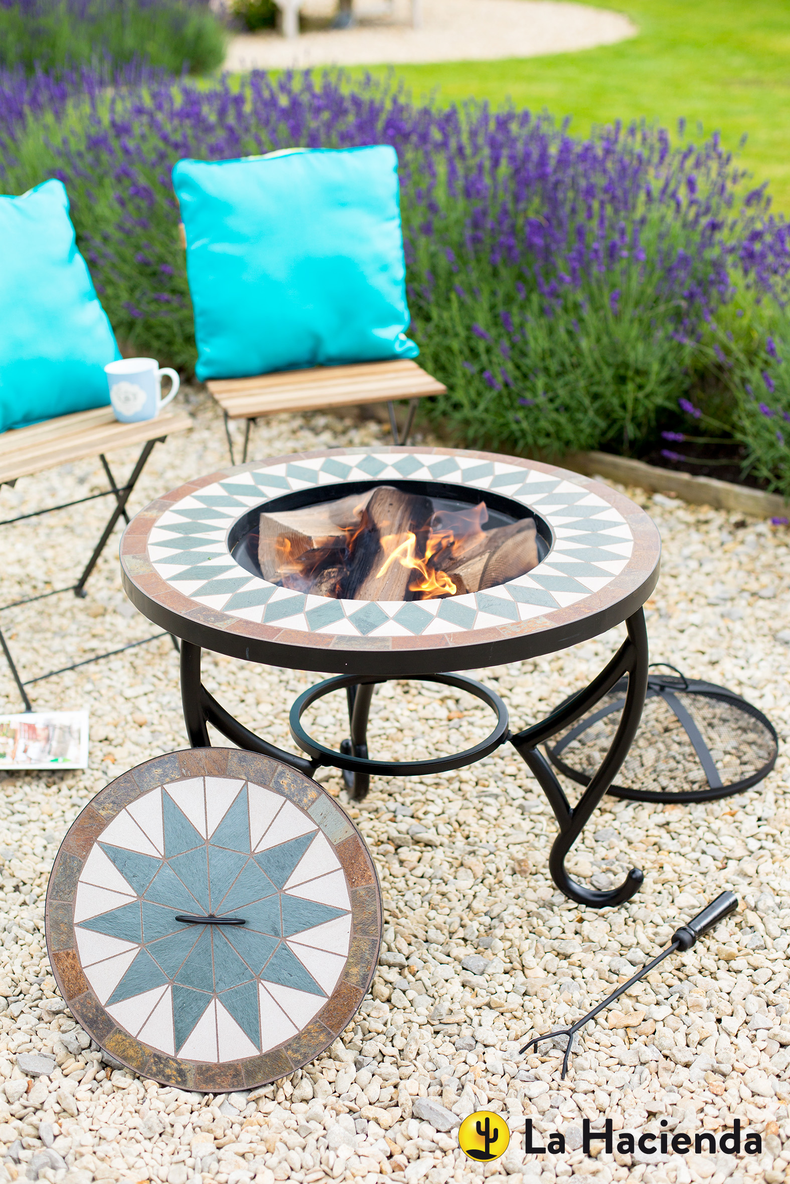 Découvrez ce magnifique brasero aux carrelages mosaïques et au look original. Pratique et malin, ce braséro se transforme au gré de vos envies en table d'appoint, barbecue ou braséro. Livré avec sa grille de cuisson chromée, son pare étincelles et son chapeau permettant de l'utiliser en table, ce braséro permet de cuisiner en toute sécurité. Ergonomique et esthétique, il permet de partager des moments de détente en toute sérénité !