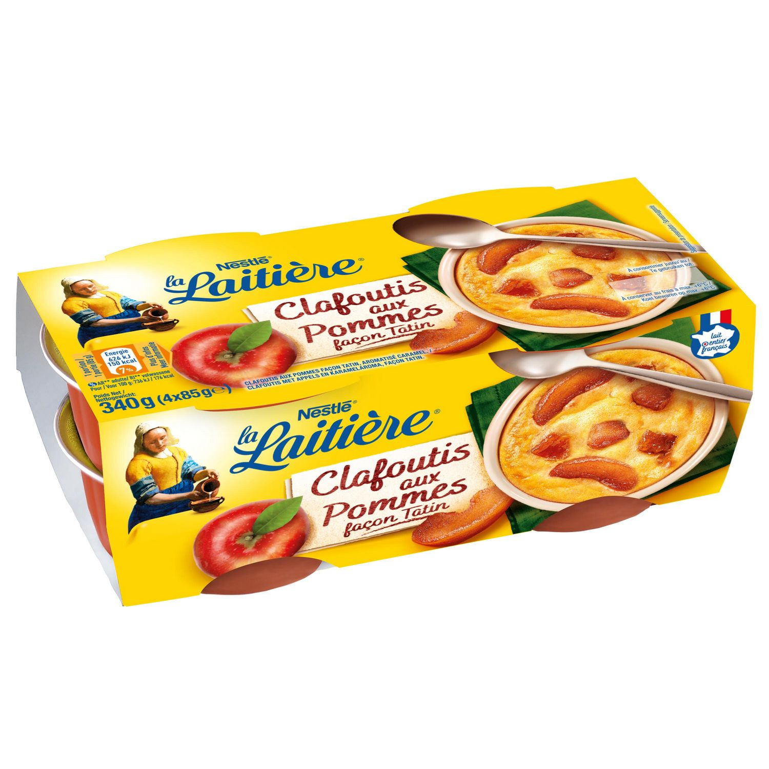 Chez La Laitière, nous sélectionnons de savoureuses pommes que l'on caramélise et que l'on mélange à des ingrédients de qualité : du lait entier, des œufs frais, de la crème. Nos clafoutis sont lentement dorés au four pour obtenir une texture moelleuse.