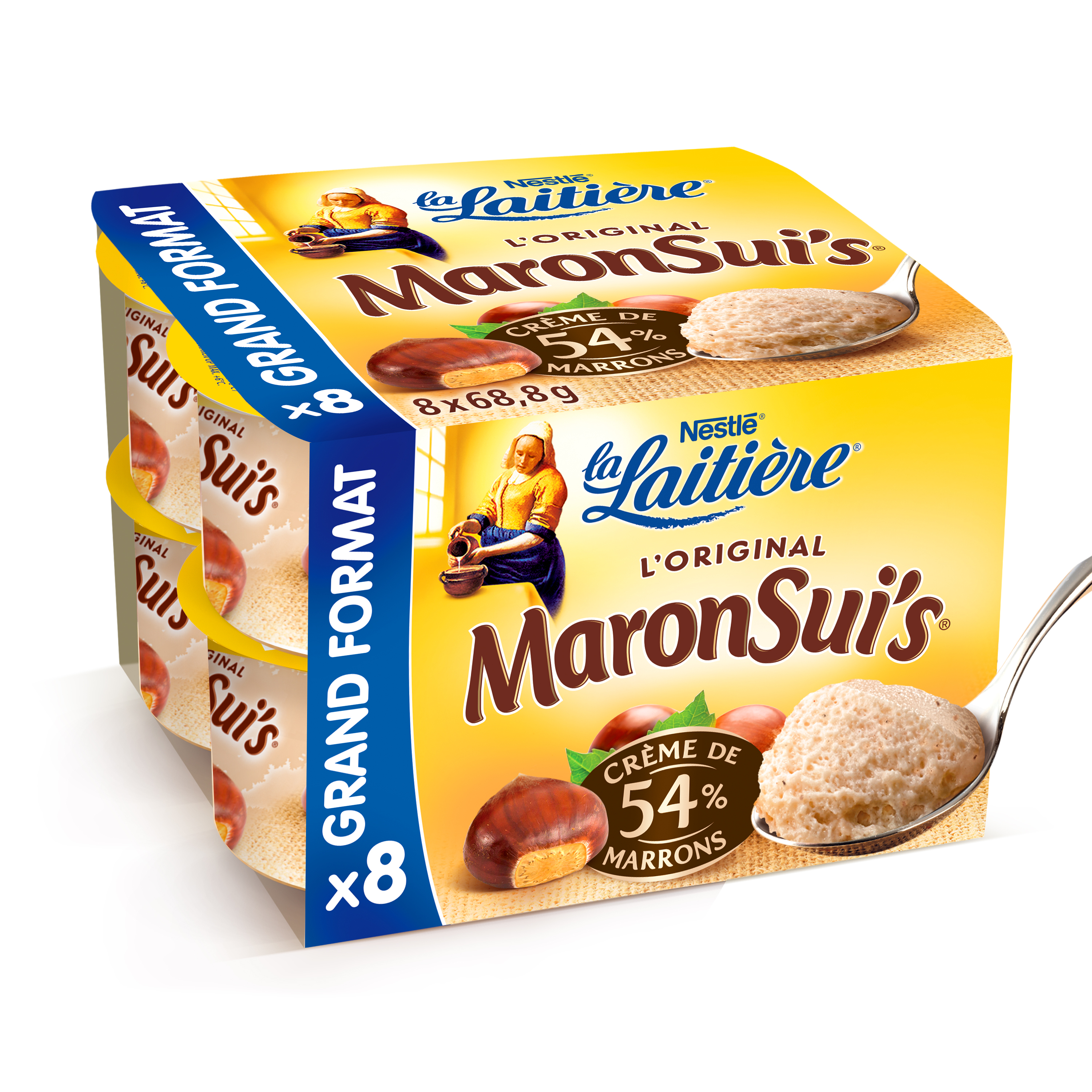 Chez La Laitière, nous incorporons dans notre mousse une quantité généreuse de crème de marron afin d'obtenir ce gout si unique