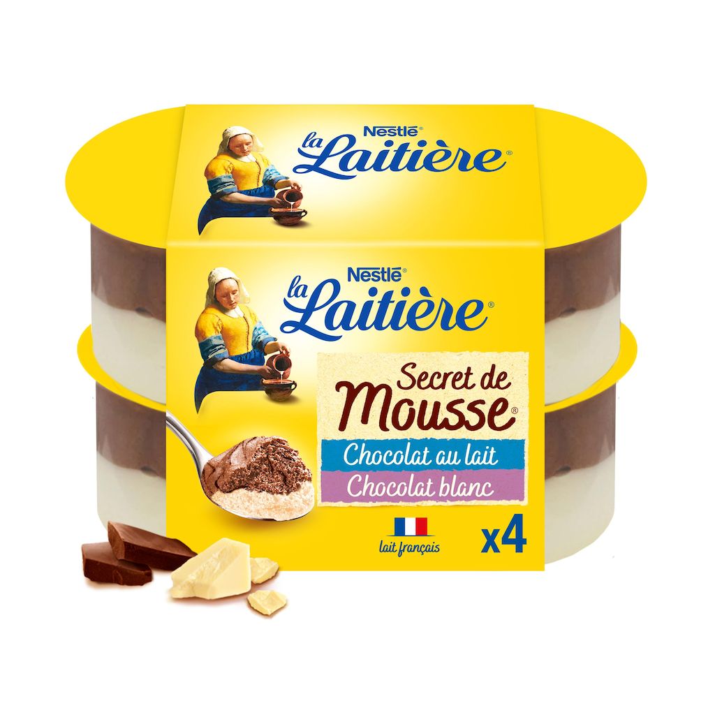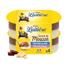 LA LAITIERE Secret de mousse au chocolat au lait et chocolat blanc 4x59g