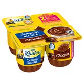 Ingrédients : LAIT entier (70,2%), eau, sucre, semoule de BLE dur (5,5%), chocolat noir (2,2%)[pâte de cacao, sucre, émulsifiant (lécithine), arôme naturel de vanille], cacao en poudre, cacao maigre en poudre, poudre de LAIT écrémé, amidon, sel, stabilisant (carraghénanes).