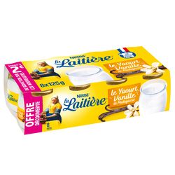 Ingrédients : LAIT entier (90%), sucre (9,5%), ferments lactiques (LAIT), poudre de LAIT écrémé, arôme naturel de vanille.