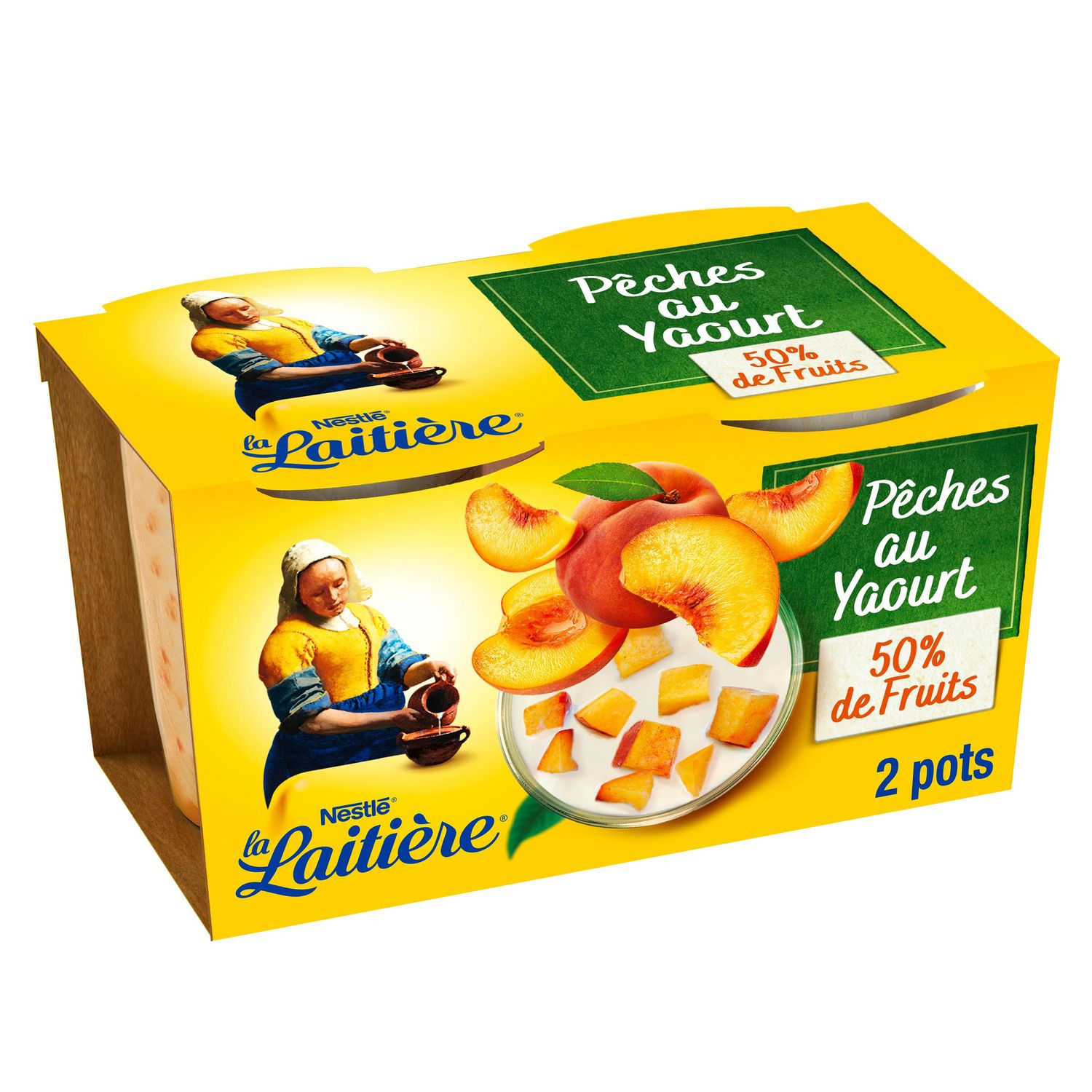Ingrédients : Pêches (50%), yaourt au LAIT entier (40%), sucre (6,6%), amidon, arôme naturel.