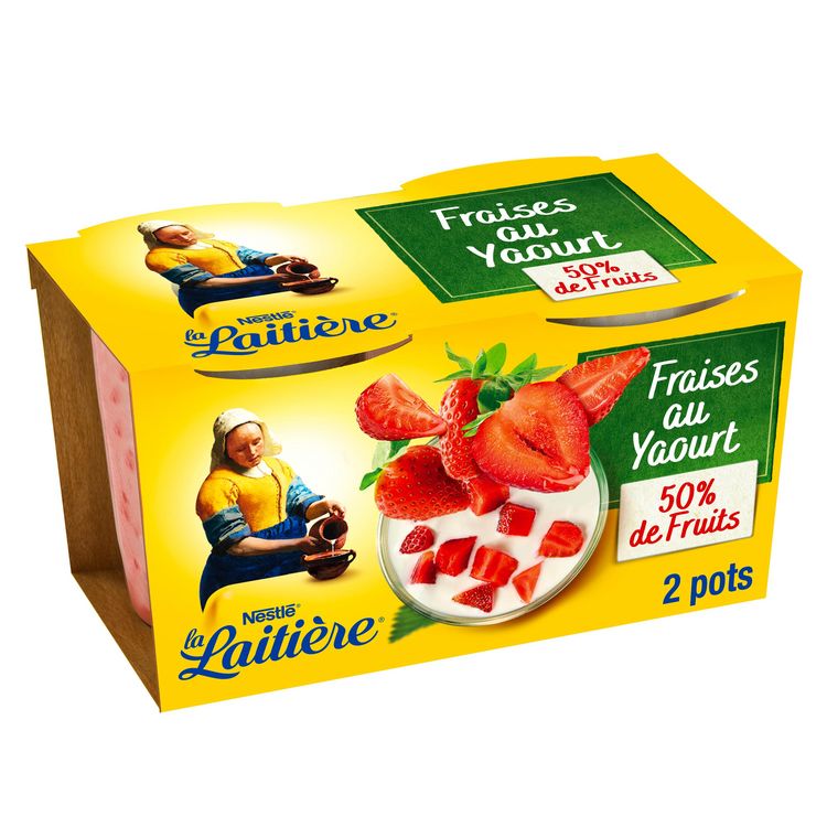 Ingrédients : Fraises (50%), yaourt au LAIT entier (40%), sucre (7,8%), amidon, arôme naturel, concentré de minéraux du LAIT.