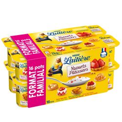 Les Yaourts Pâtissiers de La Laitière, c’est le mariage entre des éclats de biscuits, de tendres morceaux de fruits et la fraicheur d’un yaourt onctueux. Ces Yaourts sont fabriqués à Andrezieux (Rhônes-Alpes) avec du lait origine France.