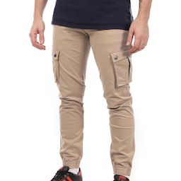 Pantalon pour homme de la marque La Maison Blaggio ! Couleur : Beige Coupe altique Poches sur les cuisses Braguette boutonnée Passants pour ceinture Chevilles élastiquées Composition : 98% coton, 2% élasthanne Les tailles correspondent aux tailles US !