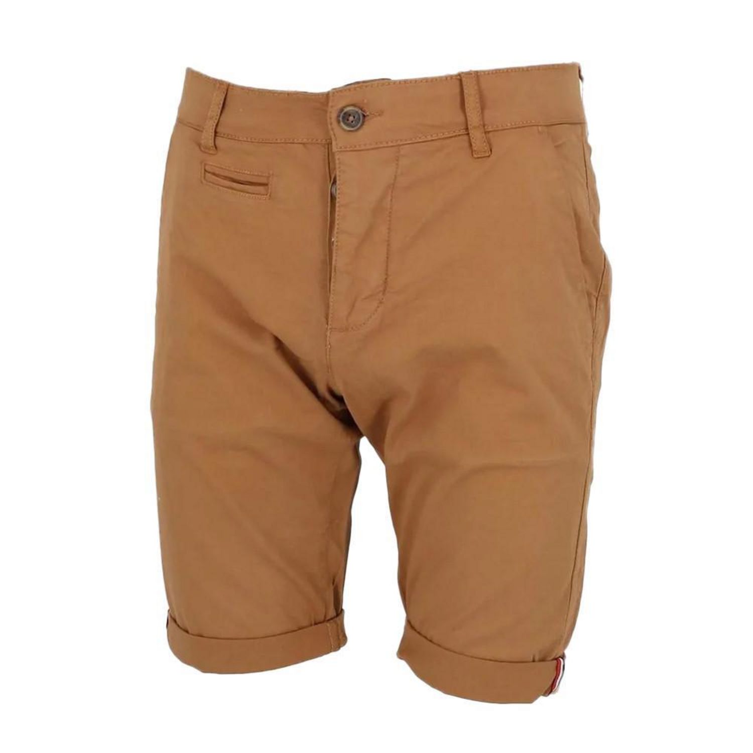 N'attendez plus pour commander ce short homme de la marque La Maison Blaggio ! Couleur : Camel Coupe altique Braguette zippée 5 poches Passants pour ceintureComposition : 98% coton, 2% élasthanne