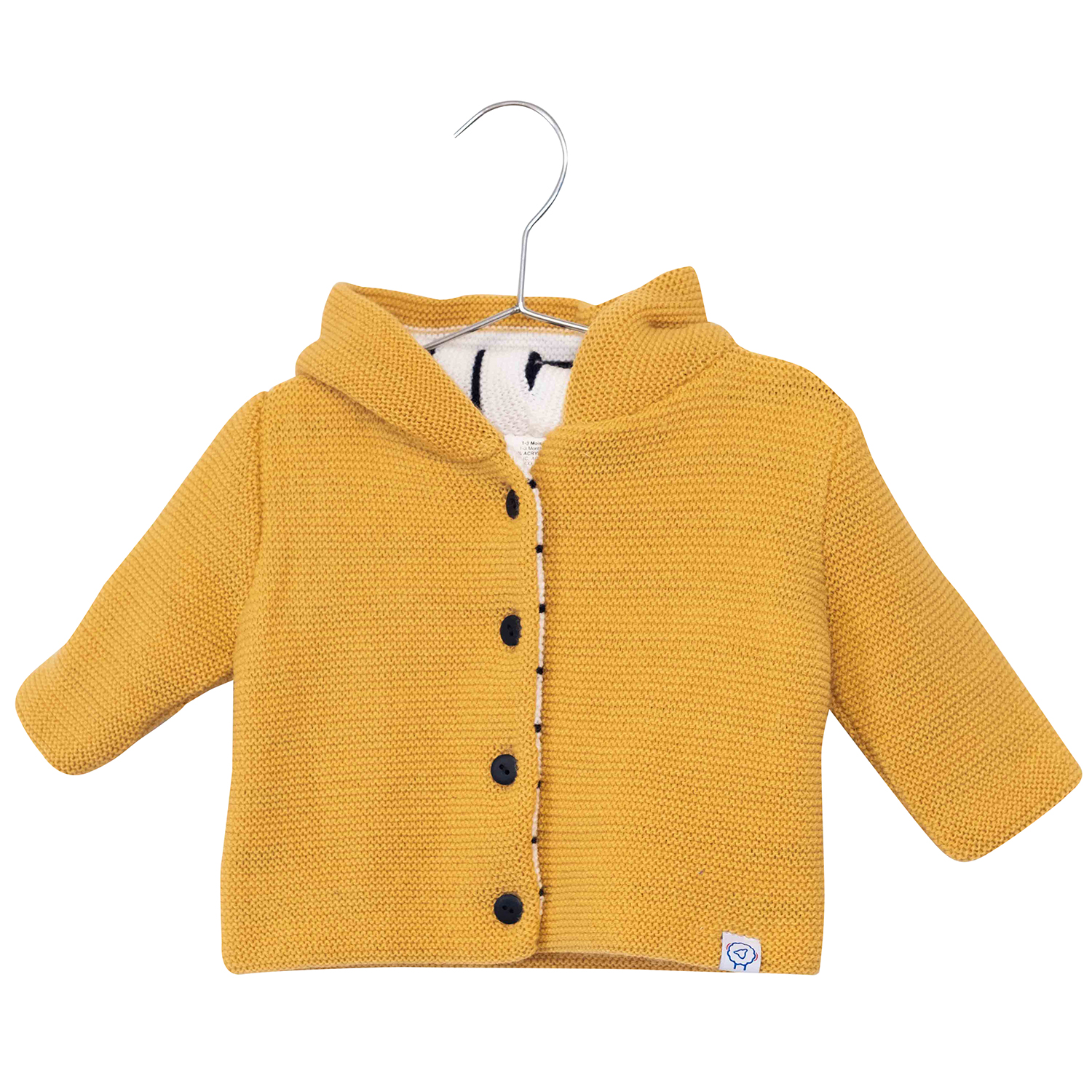 La marque "La manufacture de la layette" nous propose un manteau réversible à capuche en maille pour votre bébé. Un côté uni jaune moutarde et un côté avec des rayures marines et un fond blanc. Tout douillet, doublé, bien chaud et original, le manteau à capuche rayé accompagnera idéalement les premi