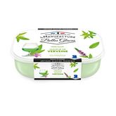 Lait écrémé reconstitué, sucre, infusion de verveine 6,5% (eau, verveine), beurre, jaune d' oeuf , alcoolat de verveine 3,7% (alcool, substances végétales, eau), sirop de glucose déshydraté, stabilisants : gomme de guar et farine de caroube, protéines de lait , colorants : curcumine et complexe cuivre-chlorophylline.Fabriqué dans un atelier qui utilise : œuf, lait et produits laitiers, fruits à coque, gluten, soja et arachides.