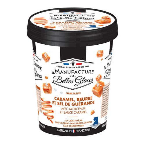 Crème glacée au caramel, au beurre et au sel de Guérande avec morceaux et sauce au caramel 460 mL / 300g