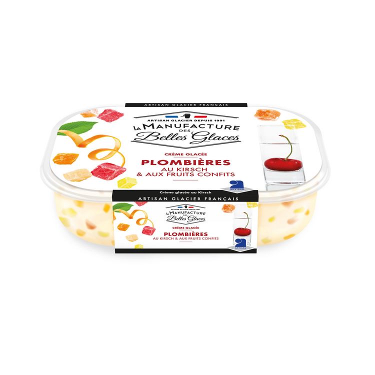 Crème glacée plombières kirsch fruits confits et écorces d'orange