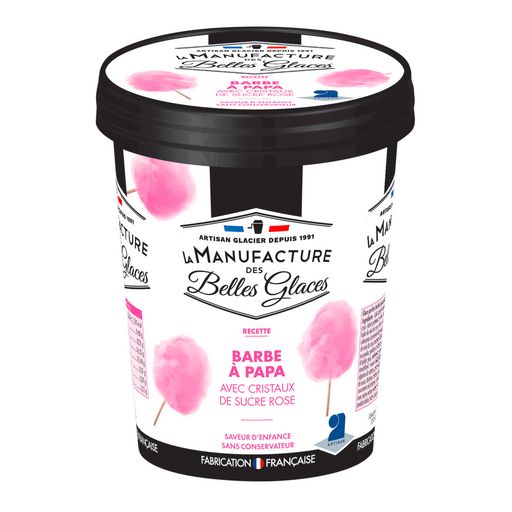 Glace parfum Barbe à papa et ses cristaux de sucre rose 460ml