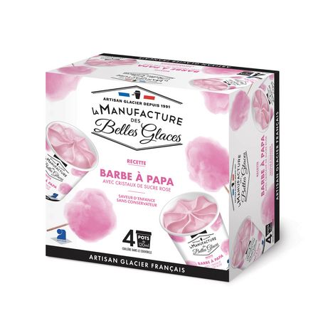 Glace parfum barbe à papa et ses cristaux de sucre roses 4 x 120 mL / 4 x 78 g
