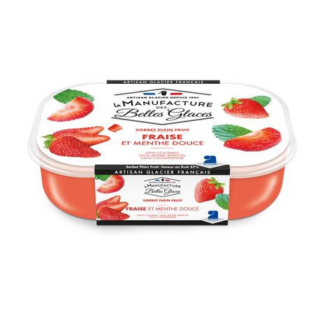 Sorbet plein fruit à la fraise et à la menthe douce 750 mL / 487,5g